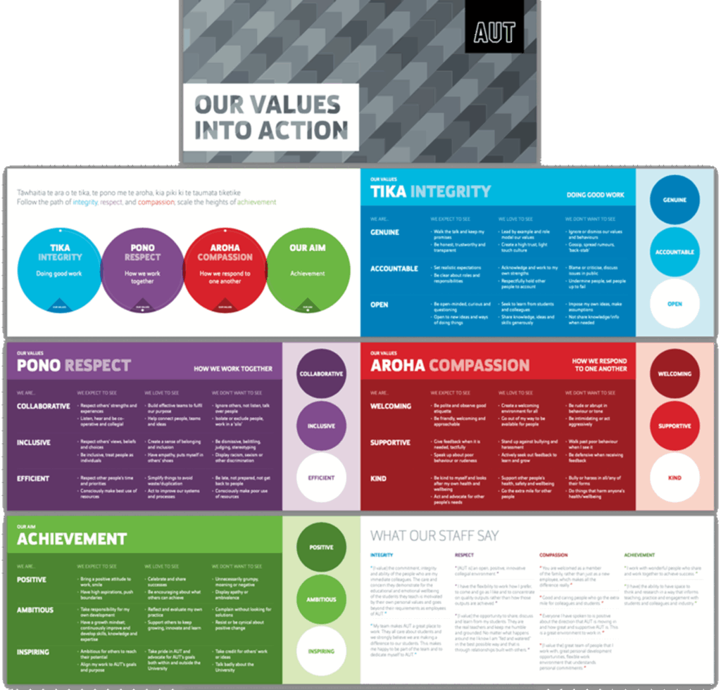 Using our proven approach, conversations with staff and students informed the creation of a values framework. By creating these concurrently in Māori and English they were created to be truly bilingual.